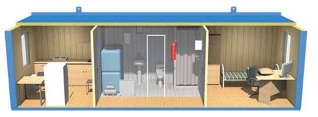 Возможна комплектация различным оборудованием (лестницами, электрообогревателями,теплыми полами, приточно-вытяжными вентиляторами, кондиционерами, сантехникой с вводом/выводом горячей и холодной воды, канализацией) и мебелью.